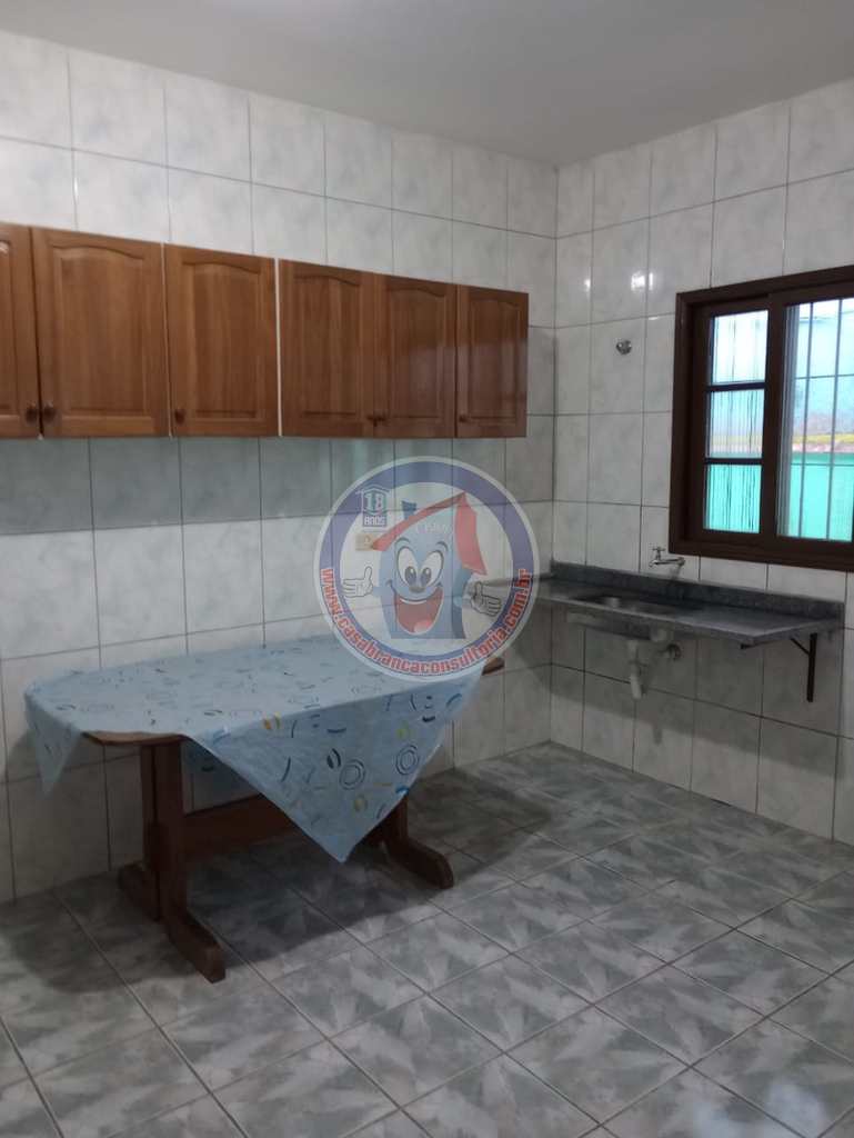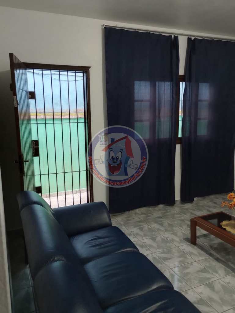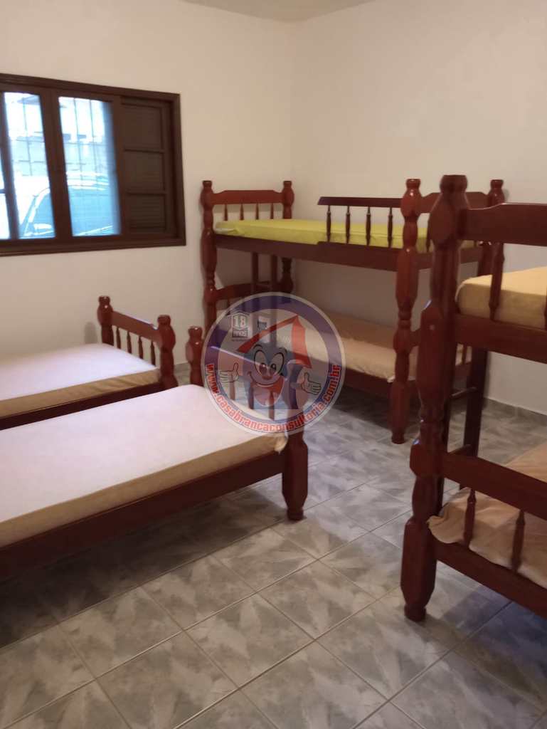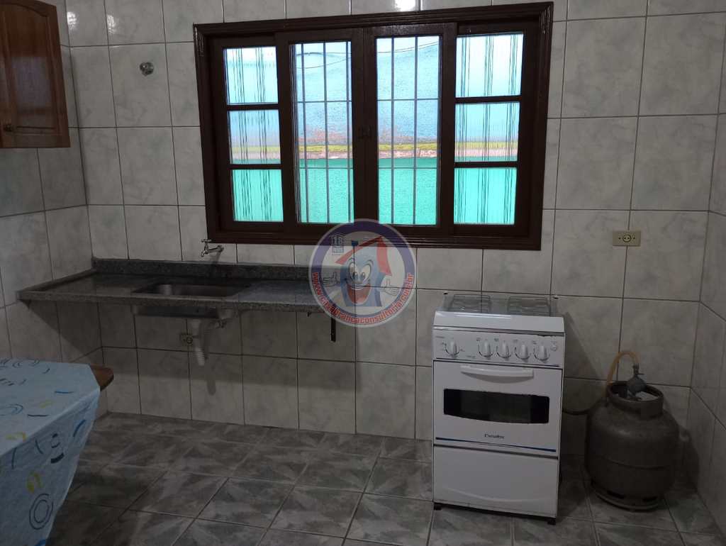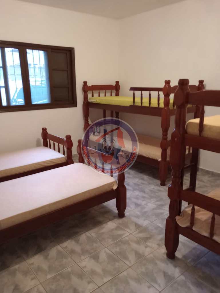 Com 1 dormitório, banheiro, sala, cozinha, área de serviço 2 vagas para automóvel. Área de serviço, churrasqueira com armário para guarda carvão ou para objetos , como ferramentas , produtos de limpeza etc. A casa contém portas de madeira maciça, grades de proteção e tela mosqueteira. Dormitório tem espaço para 5 beliches. O proprietário não aceita fins religiosos.